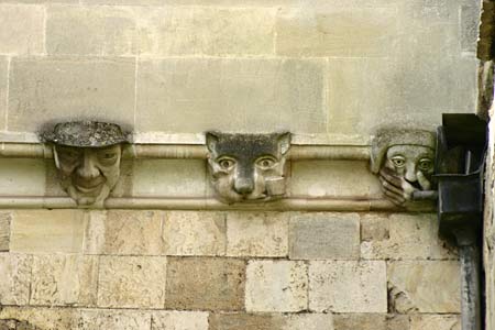 smoking dog grotesque. It was carved by Peter Dare, when they were replacing the badly weathered grotesques on that side. It is a dog called Butch that frequented a pub in Exmouth in the 70's and 80's and enjoyed a pipe of tobacco along with its owner. He can be found on the north wall of the