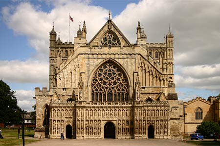 the Cathedral faces Broadgate. Bishop John Grandisson added the West Front by 1342, a beautiful facade which at the time was painted in bright colours. Just imagine all those saints, kings and biblical figures painted in a rich rainbow of colour - it would have been stunning!