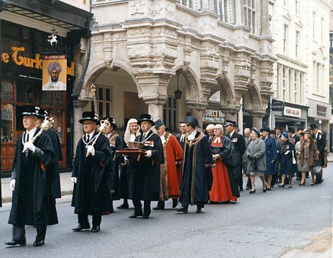 When Exeter had its own Crown Court at the Guildhall, the Assizes was opened after a procession to the Cathedral fro a service. Michael McGahey became the last officiating Sheriff of Exeter, present at the last City Assize and Quarter Sessions in the Guildhall in 1972. Photo right shows the 1972 Assizes procession leaving the Guildhall.