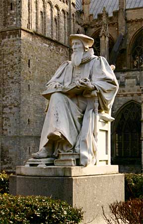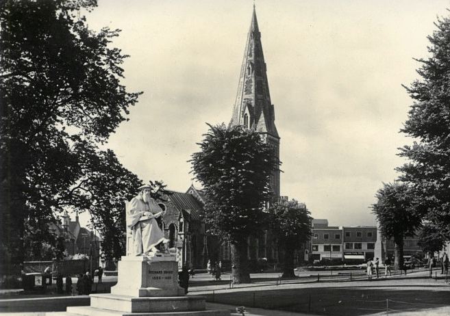 Richard Hooker was born in Heavitree in 1554 and educated at Exeter Grammar School. The statue, unveiled in 1907, is of, is carved out of white 'pentilicon' marble, by Alfred Drury RA (1856-1944), at a cost of a thousand guineas.