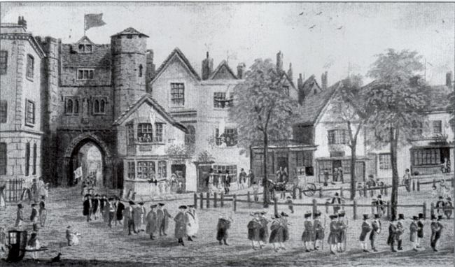 the buildings around Cathedral Yard - in 1825 the old Broadgate was