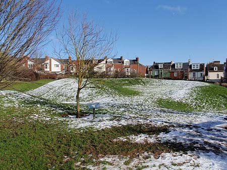 In the Middle Ages it was known as New Castle, while by 1700, it had been named Danes Castle. An advert for let, of a field or pasture, of 4 acres, called Little Danes Castle appeared in the Flying Post in 1805, although a reference to Danes Castle can be found in the paper in 1801. The field was situated near the barracks, adjoining the new road (Howell Road) and in the occupation of William Vinnicombe, cow-keeper.