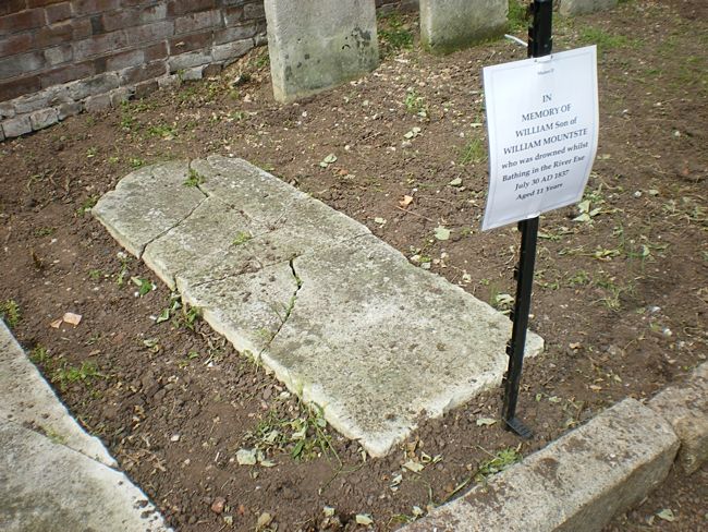 Memorial stone of an eleven year old boy who was drowned in 1837.