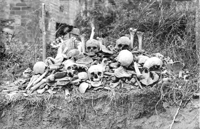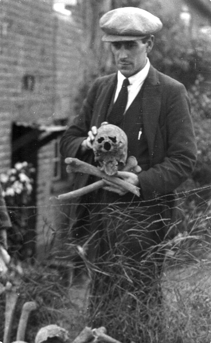 Another view of the bones–they did not treat the remains with the same respect that a modern excavation would give. © Bertram Arden.
