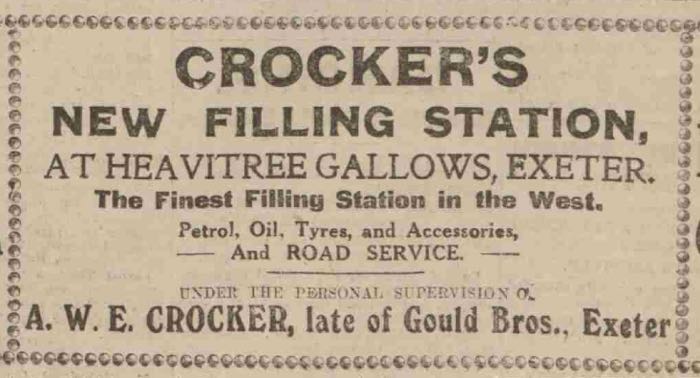 With the rise of the motor car, the junction was thought ideal for a filling station. Mr A W E Crocker, decided to open a filling station at Heavitree Cross in the autumn of 1926. During the excavation of the site to sink the petrol tanks, in the September, human remains were found in the garden of the cottage at the apex of the junction. Initial discoveries included skulls, a jawbone, and a thighbone. Within weeks the bones of at least 20 individuals were found. The Home Office was contacted, who granted permission for the remains to be placed in a box and be re-interred. Photographs were taken, which were passed around a meeting of the Council. On 5 October, the remains were buried at Topsham Cemetery.