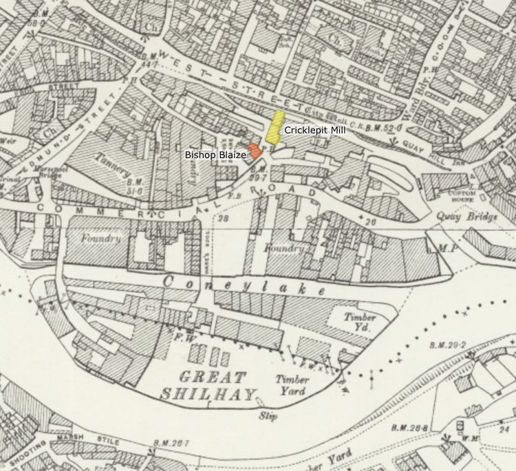 There was a second Bishop Blaize in Sidwell Street which was sold by auction in 1790. Robert Dymond noted in his Old Inns and Taverns of Exeter published in 1880 that ".... a degenerate specimen may still be seen in the Commercial Road".