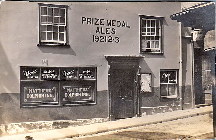 The Dolphin was up for sale by auction at the Bear Inn in February 1801. In March 1844, it was for sale with "large Room, Bar, Tradesman's Room, 4 Parlours, 10 Bed Rooms, Kitchen Cellars, large Yard, Skittle Alley, Lock-up Warehouses.... and Granary." The next year, it was Boon's Dolphin Inn and it was hosting the Exeter Western Conservative Society. Thomas Upright, son of James Upright the owner of the City Mill, took on the Dolphin in 1857.