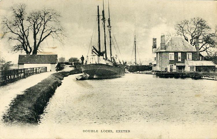 Of the walks on the other side of the Exe, from Haven Banks to the Double Locks was the most frequented, from its pretty scenery and refreshing air, being about two miles by the side of the canal. The majority out of the many hundreds were mostly the younger members of the community. At the quay about fifteen to twenty vessels might be seen, and beyond were boats moving to and fro, the double locks being the extent of the pull. The inn was the rendezvous for refreshment, and was well patronised, every room, the skittle alley, and forms in the field being engaged by the weary ones.