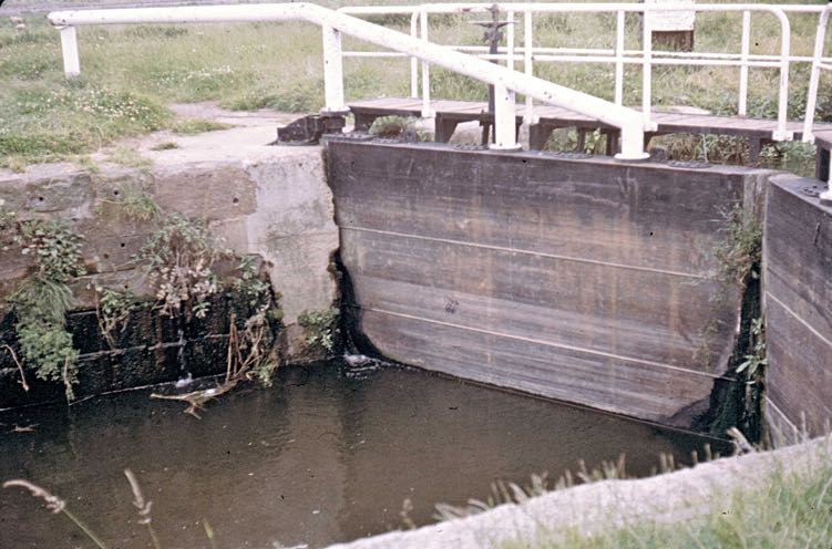 and used as the arms on the lock gates. In April 1956, a quote from Messes R W & F C Sharp for two pitch pine balance beams measuring 14x14inch by 45/46ft at 32/11 (£1 12s 11d) per cu.ft delivered to Exeter Station was accepted.