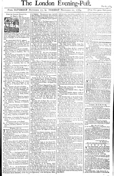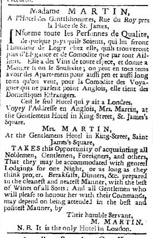 That is until an awkward advert was found in the London Evening Post for 17 November 1764, placed by a Mrs Martin of King Street, St James’ Square.