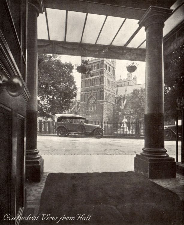 Limited archeological excavations in the basement of the hotel exposed a Roman occupation at the lowest level. By the 13th Century, the Cathedral was going through its Gothic rebuild, and it is believed that there was a Canon's house on the site. The layout consisted of a large hall, behind the frontage, with chambers on the front and the usual domestic rooms such as kitchen and brewhouse at the rear. There was a gateway, on the right, giving access to the rear from Cathedral Yard. The first two floors of the facade, and a side wall of the assembly room, probably dates from this period. The Well House and Exeter Bank belonged to the Vicar's Choral, while the Canon's House under the jurisdiction of the Dean and Chapter. From the early years of the 18th Century, the corner site on which the bank was constructed was the Rummer Inn.