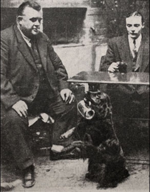 Sam's skill was used to raise money for the Spitfire Fund, War Weapons Week, Salute the Soldiers and other worthy causes, in Britain's hour of need. His record take in one week was £23 which he delivered to the Mayor's parlour. He was said to be fond of beer, which along with the dog biscuits, was sufficient payment for the canine bartender.