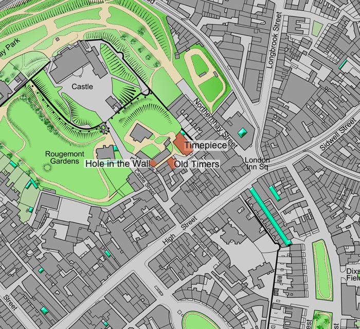 Source: Express and Echo, Archaeological Excavation at the Timepiece Nightclub Exeter–Archaeology Report No. 11.01. and Ex Magazine, April 2014. Commentson the Exeter Memories Facebook group page.