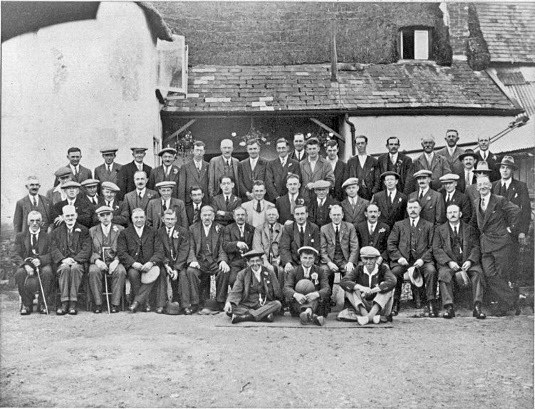 The Admiral Vernon was an important place for villagers to meet and socialise. Their first organised trip was to Dartmoor in 1927, while the photograph shows one such outing on the 23rd July 1932, when 52 regulars went to Bigbury Bay.