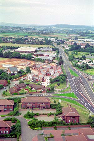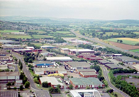 Industrial Estate with the M5 motorway to the right, and Kestrel Way to
