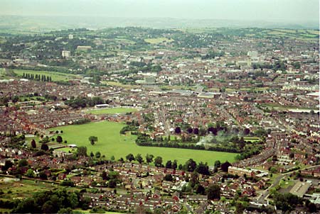 Locks Hotel by the canal taken from the air in 1994. The River Exe