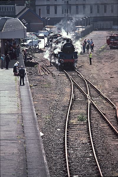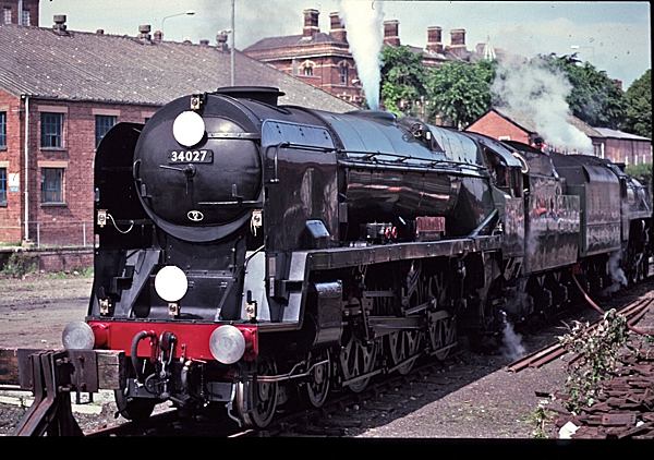 NEW This BR West Country class steam locomotive 34027 “Taw Valley" (left) at Exeter Central, on a special visit with BR Standard Class 4 75069 (right) in August 1992. "Taw Valley' went to the Woodham Brothers scrap yard, Barry Island, South Wales in 1976, and was saved for preservation. 75069 also went to Barry from 1967 to March 1973 before it was hauled to the Severn Valley Railway and then to Bridgnorth for restoration in 1974. Photos August 1992 David Cornforth