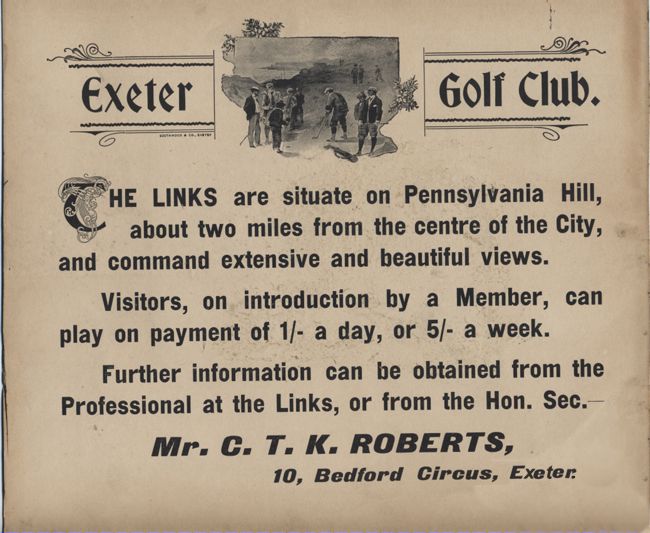 Source: Exeter Golf Club - Centenary Year History, An Exeter Boyhood by Frank Ritter.Exeter and Plymouth Gazette, Western Times and the Western Morning News. © 2006 David Cornforth - not to be used without permission.