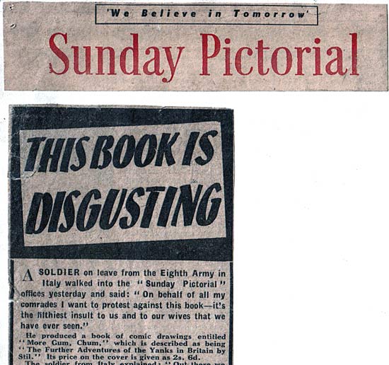 I produced a series of cartoon books during the war, making fun of the American invasion of these Islands, under the title of "Any Gum Chum?", "More Gum, Chum!" etc and the "Sunday Pictorial" came out with a front-page attack against them.