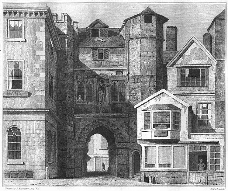 Jenkins in his History of the City of Exeter wrote of the statue that resided in a niche over the arch.