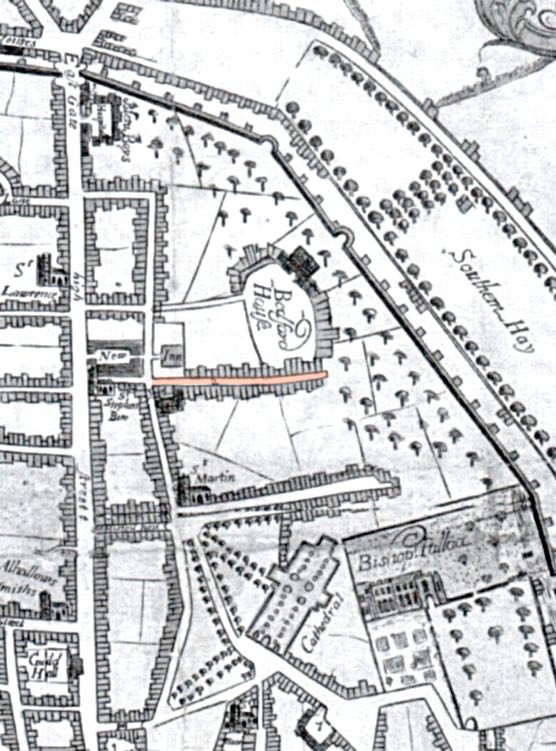 The stables of the New Inn, the largest and most important in the city in the 16th and 17th centuries were situated on the opposite corner to St Catherine's Almshouses and Chapel, at the entrance to Egypt Lane. In the 19th Century, even the Royal Clarence had stables in Egypt Lane.
