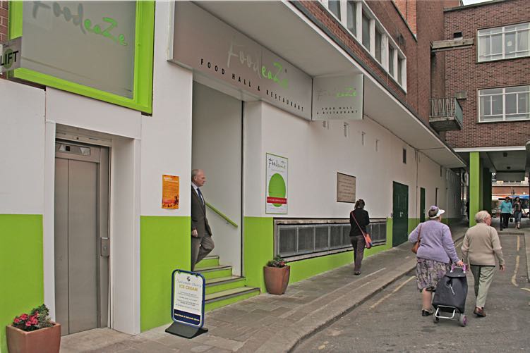 The market hall was closed by the city council in 2005 and was reopened in a £1.8 million refit as FoodeaZe, an in season, food market in late 2006. The smell when you walked in of fresh produce and ham, cheese and bread was very welcoming. It was hidden away, but worth a visit. The location and the opening of the first stage of the new Princesshay development meant a lower than expected trade, and FoodeaZe went into administration in May 2007. George's reverted to its original name of the Corn Exchange in 2007.
