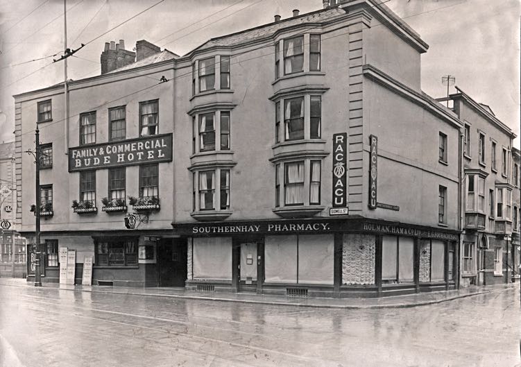 Southernhay narrowed at the northern end, before joining Sidwell Street. The Southernhay Pharmacy was on the corner.