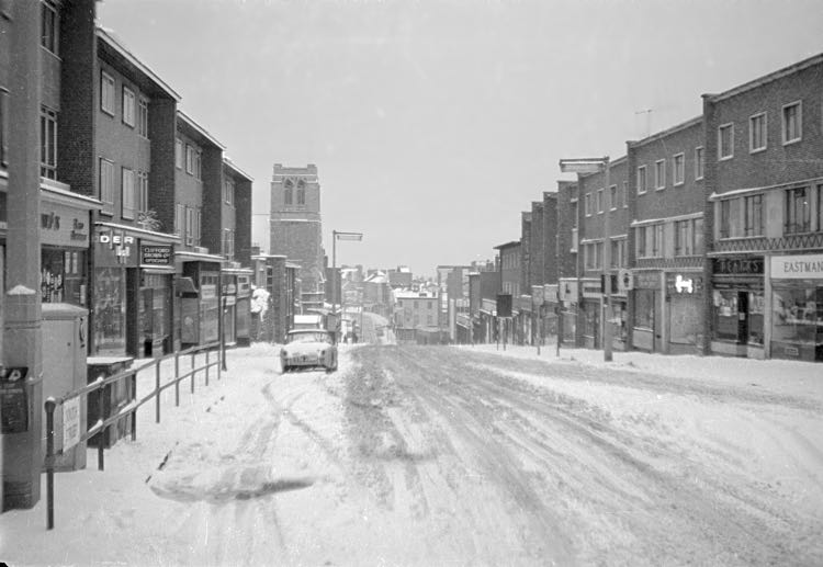 South Street was badly damaged in the 1942 blitz, and rebuilt between 1954 and 1961. All the churches survived the blitz, while both the Sacred Heart and Baptist Church survived the Blitz due to the courage of the ministers, caretakers and locals who fire watched on the roof and threw off incendiaries or put out fires.