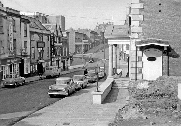George's Meeting House on the right, and the White Hart Hotel in the early 1960s. Photo Dick Passmore.