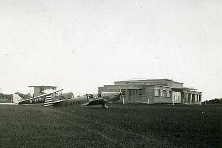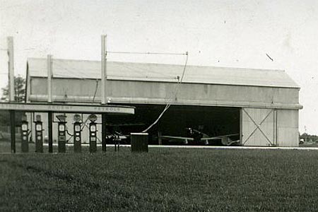 The main hangar and fuel pumps at Exeter Airport in 1938.