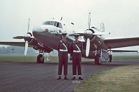 In 1962, this aircraft flew from Exeter to Norway to ferry NATO troops taking part in an exercise. Delays caused by fog turned a 36 hour roster for the crew into 120 hours before they returned to Heathrow. Doug Johns, mentioned opposite, and Phil Kelly both trained as Engineers at RAF Halton. Doug in the 61st Entry and Phil in the 76th Entry. Doug subsequently trained as a pilot in th RAF and after leaving CAACU flew as a Captain with Westpoint Aviation based at Exeter. Subsequently he joined British Eagle International Airlines at Heathrow where Phil was already working and both flew on the Bristol Britannia together on a number of occasions. Photo from former Flight Engineer Phil Kelly. See the British Eagle website.