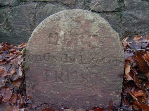 The Exeter Trust like other turnpikes in Devon chose to mark the end of their responsibility for road repairs by placing a sturdy granite stone, suitably inscribed with details indicating the change of ownership. There are today just three of these stones known to be surviving in the county one on the rising road from the village of Dunchideock on the old route to Chudleigh over Haldon Hill that is inscribed 'HERE/ends the Exeter/TRUST/'. There is another in Crockernwell on the old A30 road to Launceston similarly marked 'Here/Ends/Exeter/Trust/' and one other at Labbetts Cross on the old road from Crediton to Barnstaple that shows 'Here/ends the/Exeter /Turnpike/'. The stone in Crockernwell is one of three Turnpike markers set in a wall, the middle of which measures a distance of 11 miles from Exe Bridge. Terminus stones were an integral part of the Turnpike system as they clearly marked the boundaries between Trusts. Given its lengthy remit it is perhaps surprising to find so few of the Exeter stones remaining.