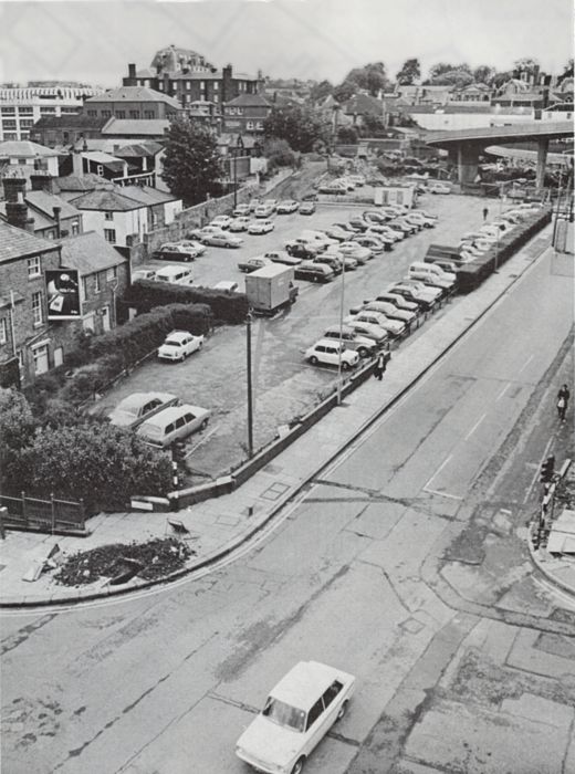 The ramp for the Guildhall Centre car park has been constructed in this photo from the 1970s. Harlequins is still to be built. Photo Dick Passmore.