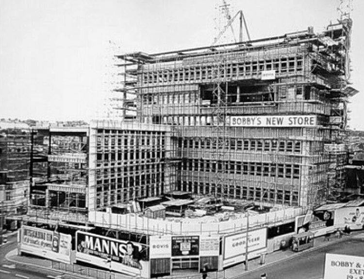 In March 1962, work started on the new Bobbys, at the junction of Sidwell Street and the High Street. With Bovis Ltd as the main contractor, 340 men and 60 subcontractors worked to complete the 140ft, 123,000 sq m, seven story, concrete and steel building, in 25 months. The estimated cost of the building was £825,000. Designed in January 1961, the architect for the building was George Baines and Syborn, who seem to have taken particular care to make the building blend in with the surrounding city!