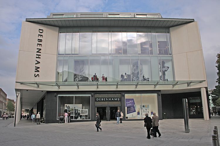 When Land Securities decided to redevelop Princesshay, an important feature of the plan was for a large department store as the flagship business of the development. Within a short time of the announcement of the plans, Debenhams had negotiated an option on the new facility. The new Debenhams, in Bedford Street has twice the floor area of the old store. There is a main entrance facing Southernhay, paved with Portuguese stone blocks and a restaurant overlooking the Cathedral, giving stunning views across Princesshay Square.