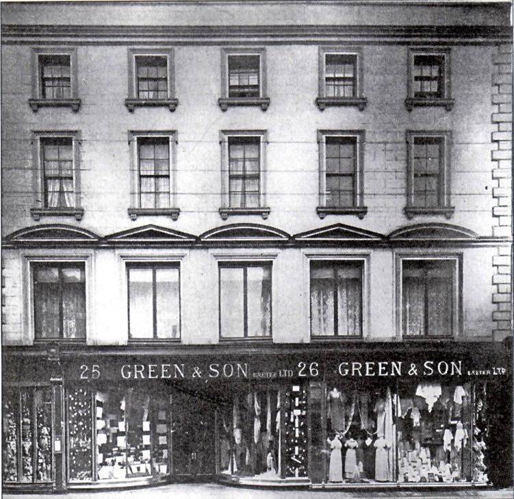 Green and Sons in the High Street. St Steven's Bow is the gap to the right. The site is currently Thomson Holidays and The Link.
