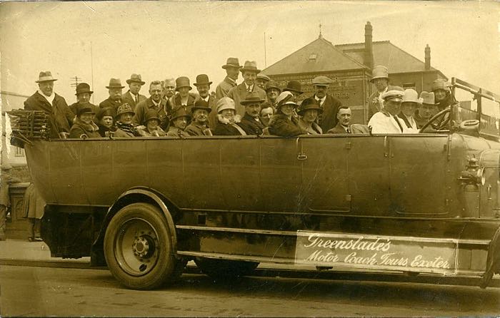 and Model T'sIt was back in 1912 that brothers William and Gilbert Greenslade, who had previously joined their father's cycle repairing and manufacturing business, purchased a Model T Taxi for £97. They quickly expanded the business by purchasing two more Model T's and introduced a service between Hele Station and Bradninch. They further expanded with a couple of French built, 14/20 seater, charabancs and commenced a coach service from their base in Fore Street, Bradninch, near Cullompton. The vehicles were driven by the brothers, touring on day trips from Exeter through Devon. These were the days when their customers arrived by train from London and the north of the country. The business flourished and the charabancs had to be serviced at night as they were constantly working during the day.