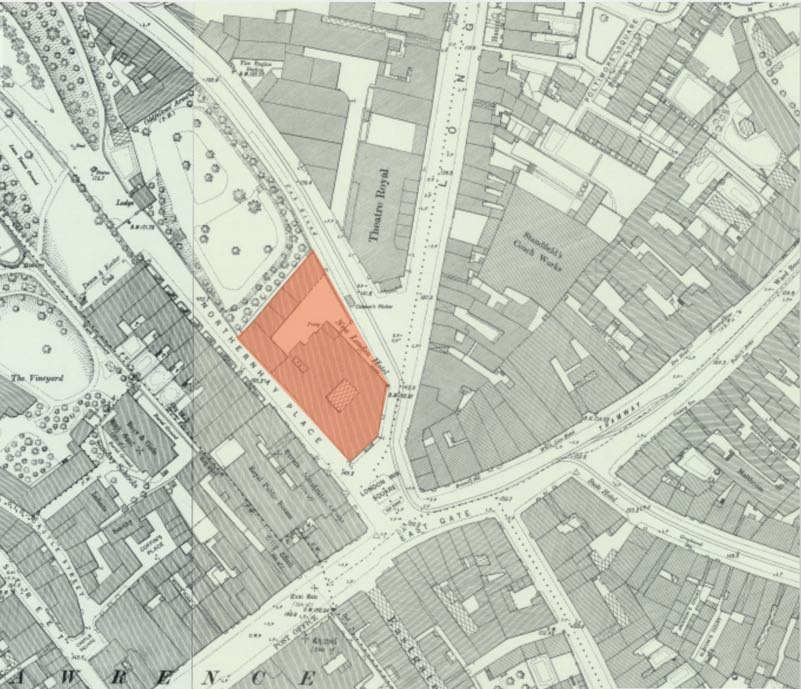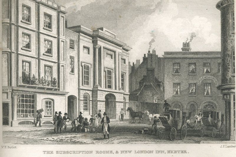 In 1833, the young Princess Victoria made her first of two fleeting visits to Exeter (the second as Queen) when in August 1833 she stood in her carriage outside the New London Inn "and bowed in the most amiable and condescending manner to the assembled multitude".