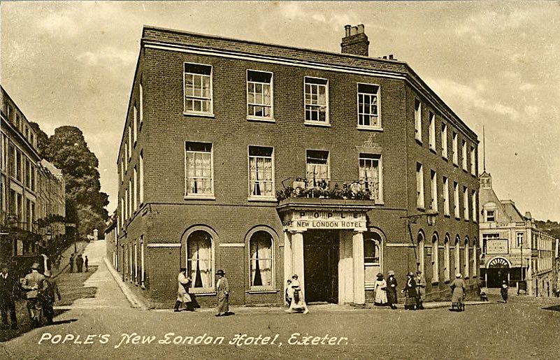 From January 1869, the landlord was Robert Pople, who had previously run the Half Moon Inn. Pople was active in local politics, representing St David's Ward in the city council, Sheriff in 1890 and a very popular Mayor for three years running from 1895. He gained fame when he was praised, in the Illustrated London News, for his efforts to save life during the Theatre Royal fire in 1887. He quickly produced six to eight ladders by which more than fifty people were saved. He opened his household to tend to the survivors and laid out the dead in the courtyard and stable yard at the rear of the inn. The inn became known as Pople's New London Inn and at one time had a large sign across the front saying just, Poples. In 1898, Pople was made an honorary freeman of the city. He died in 1909 at the age of 72. See Exeter's cemeteries for his grave.
