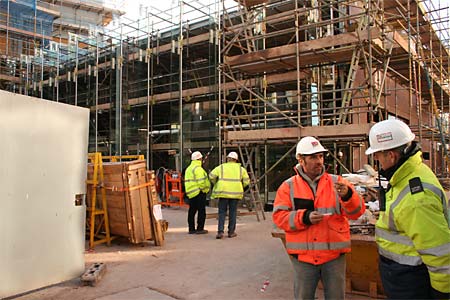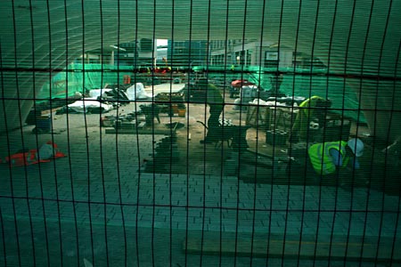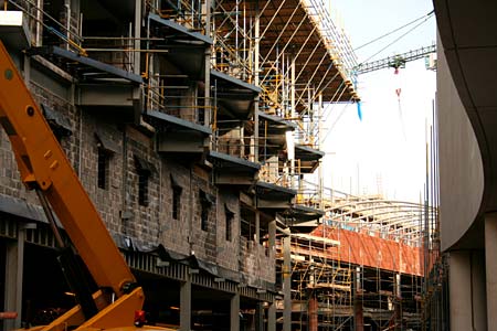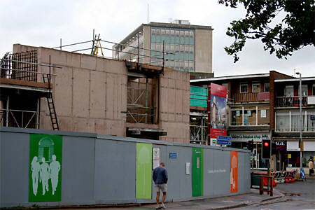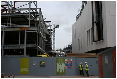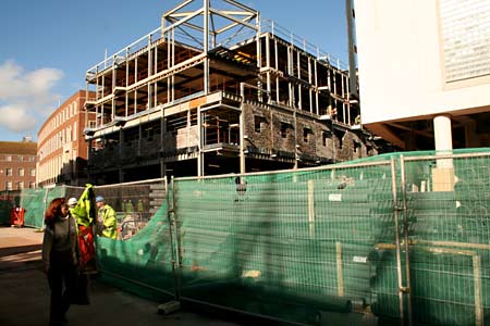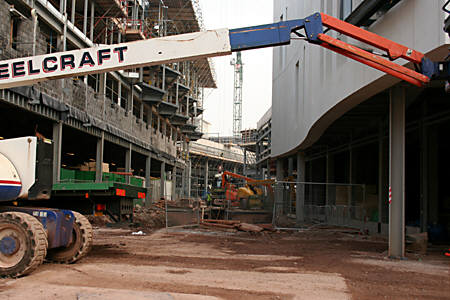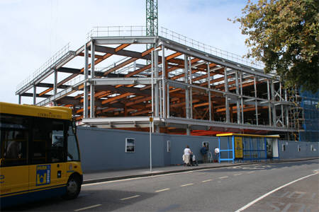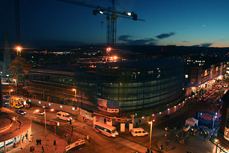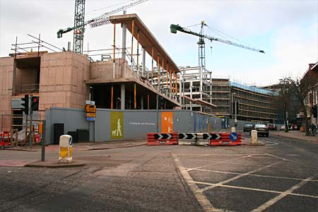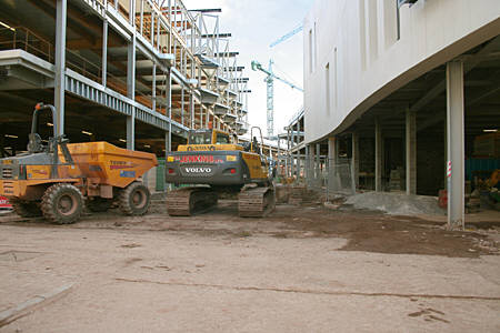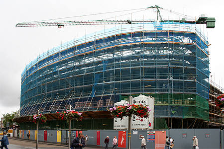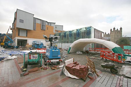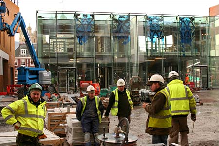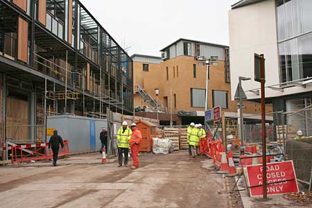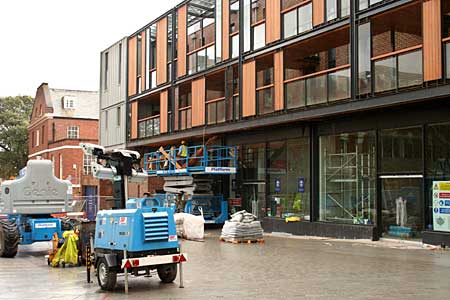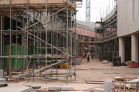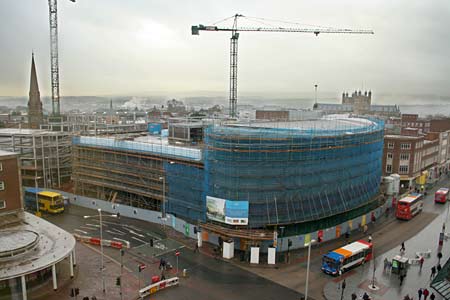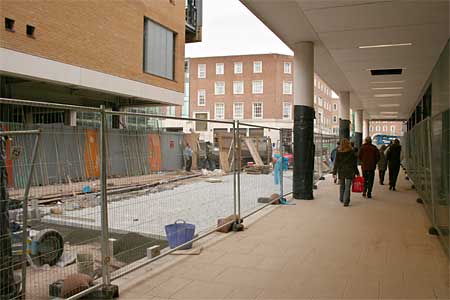 Princesshay is a mass of vertical and horizontal iron as workers are