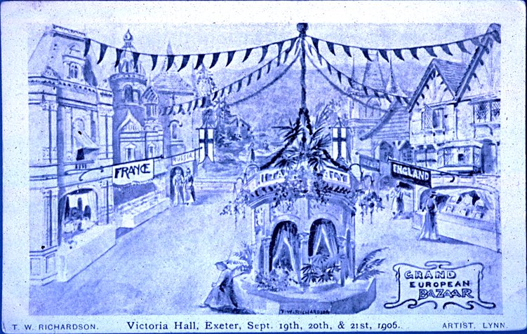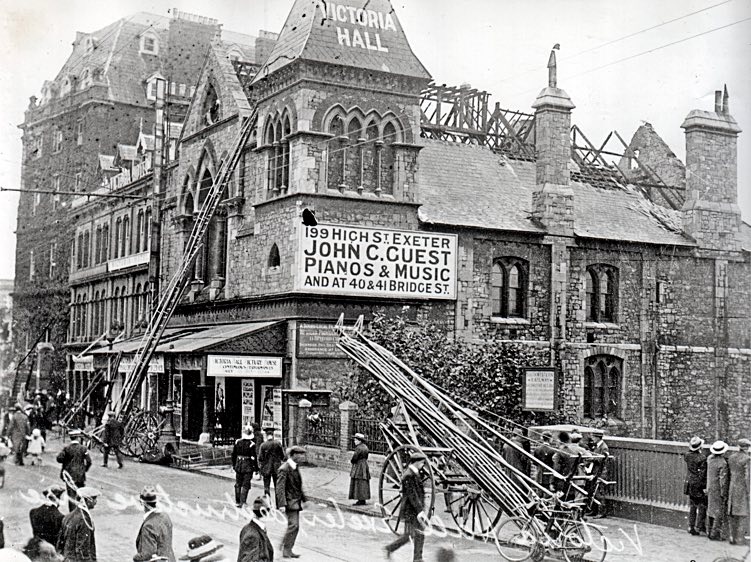 The cellars below the hall were used as a bonded store and a large quantity of wines and spirits had to be removed and placed in a safe place. The hall was also used as an early cinema in Exeter: