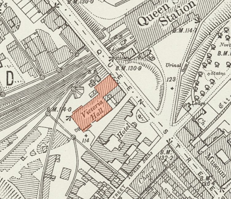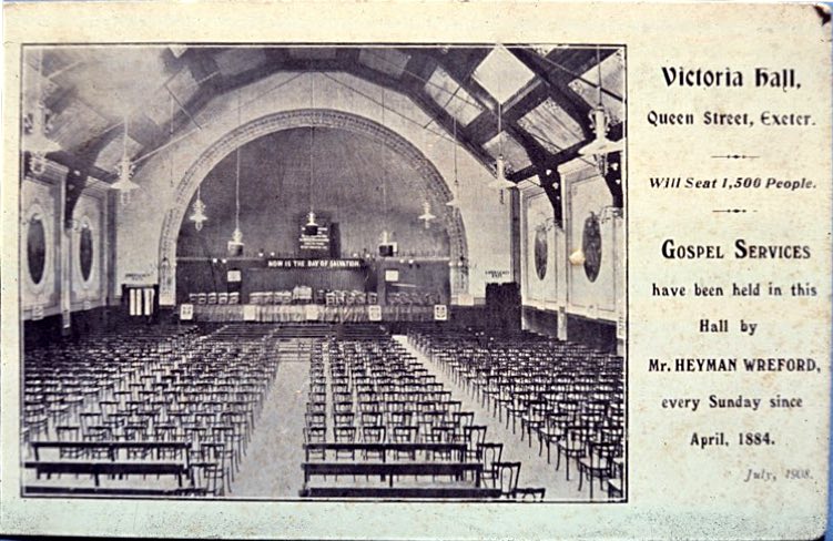 However, Exeter did once have a hall that could fulfill this function - Victoria Hall in Queen's Street. In December 1868, the Chamber of Commerce, were preparing to host a meeting of the British Association for the Advancement of Science, requiring a hall with seating for 2,000 people.