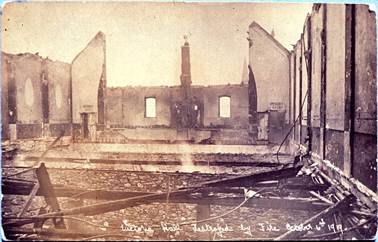 On 6 October 1919 disaster struck when the Victoria Hall caught fire.